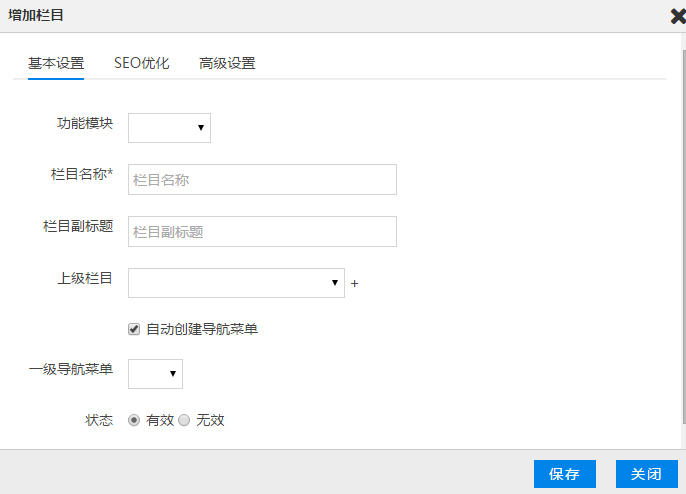 功能模块:选择栏目输入哪种类型【单页、产品、新闻、相册、反馈...】