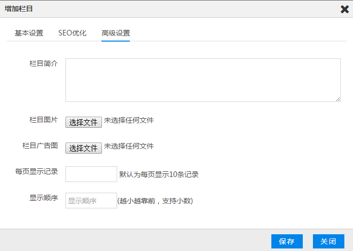 每页显示记录:列表栏目每页显示条数,默认显示为10条