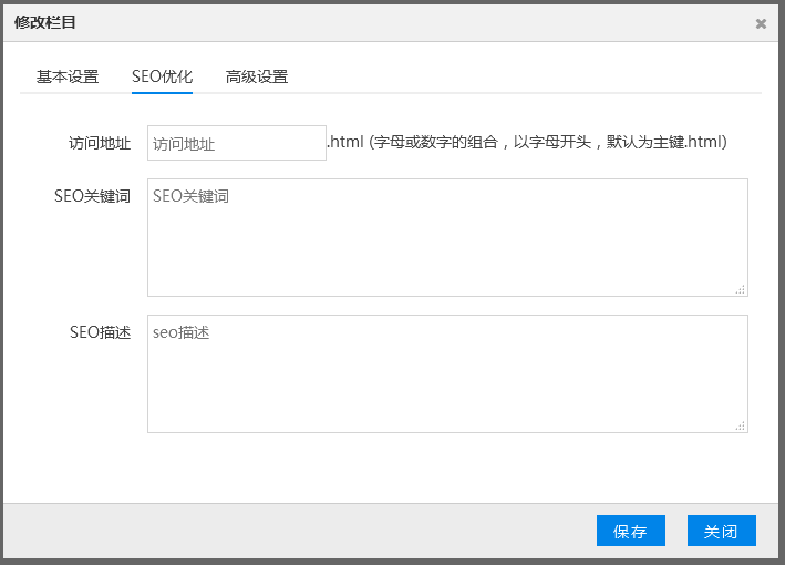 一.网站设置,这是站点必须的优化,主要的站点名称,服务电话,logo,关键词和描述,都是必不可少的,根据自己的网站来安排
